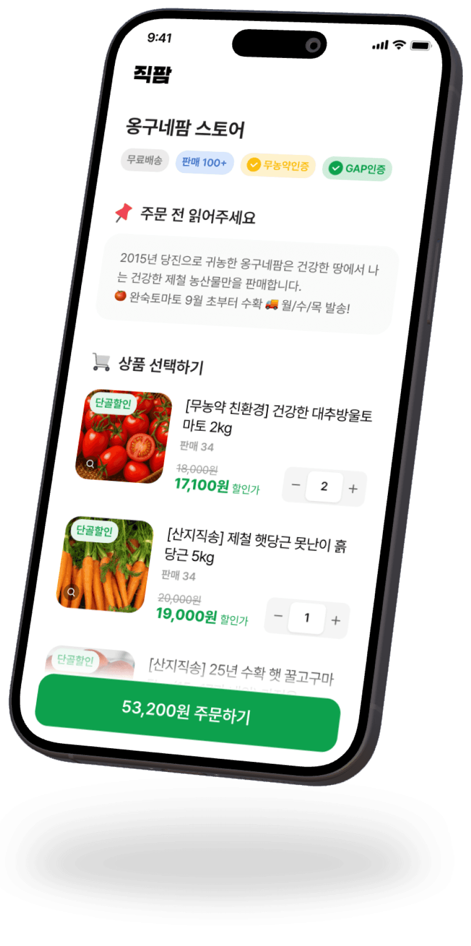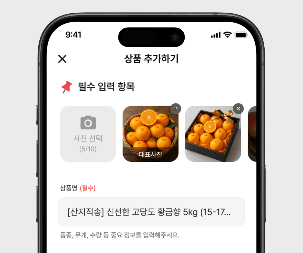 농산물 직거래에 꼭 필요한 정보만 입력하세요. 그 외의 정보는 묻지 않아요.